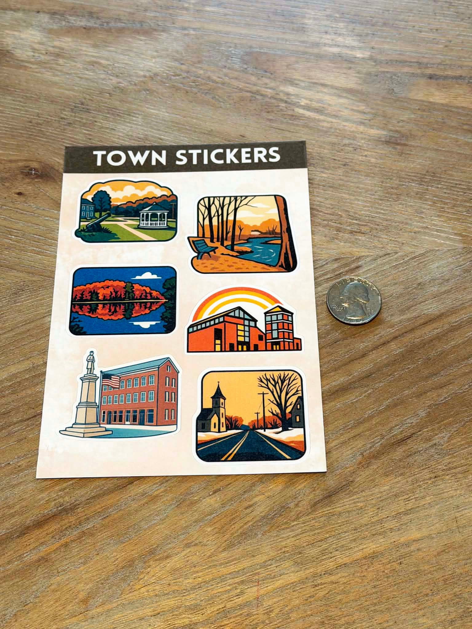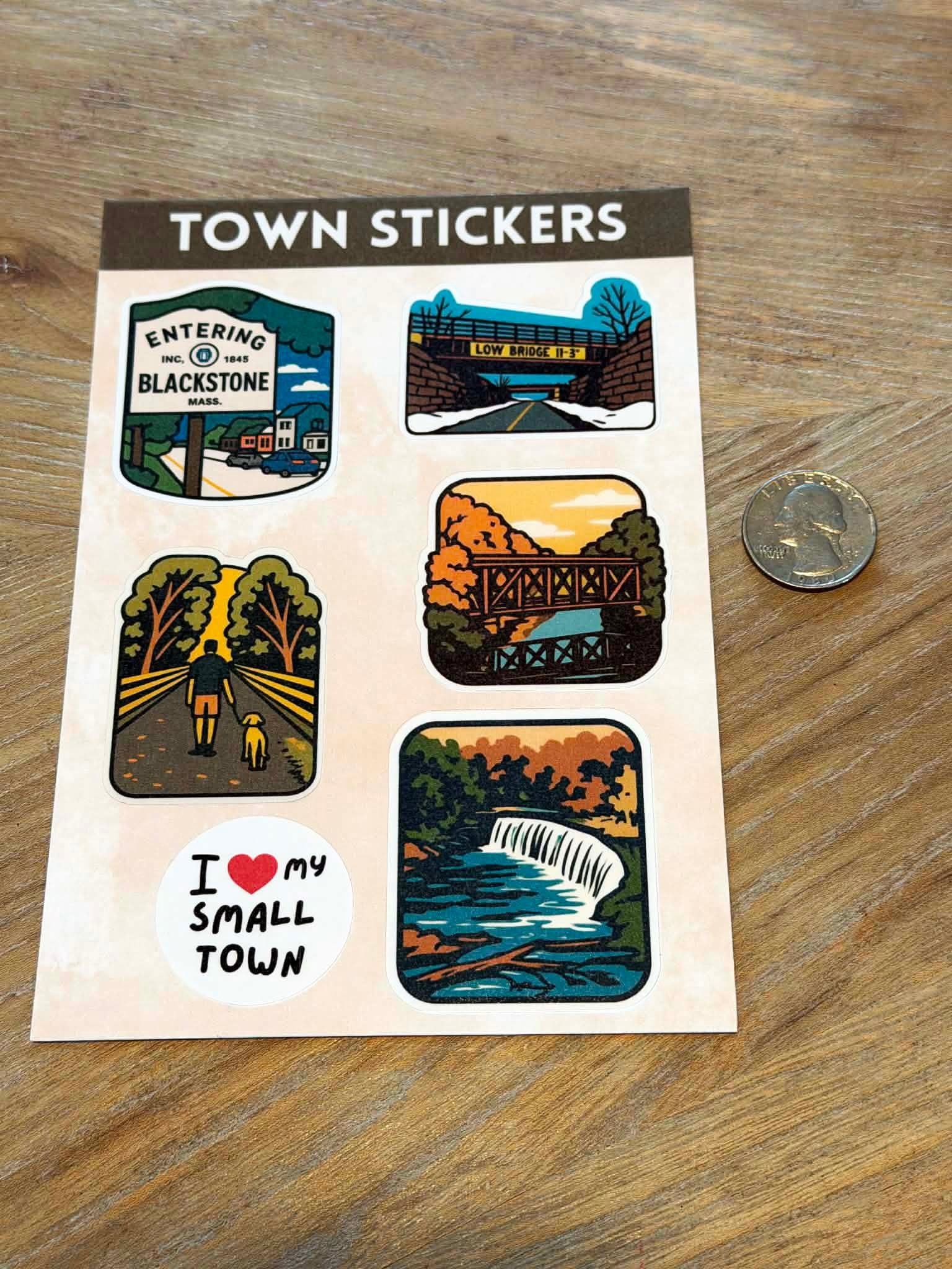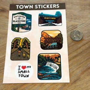 Celebrate the local charm of our community with this exclusive sticker collection. This set includes two sheets with a total of 12 unique stickers highlighting the beauty of the area. From the stunning Blackstone Gorge and scenic river views to our iconic bridges and local architecture, these stickers capture the essence of the town in a rich, illustrative style.